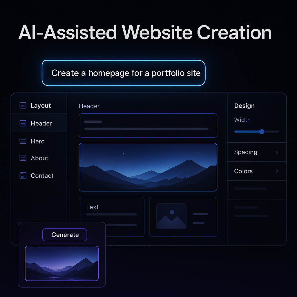 Build With AI allows you to describe what you want in plain English and generate usable output such as HTML pages, content, and images.
